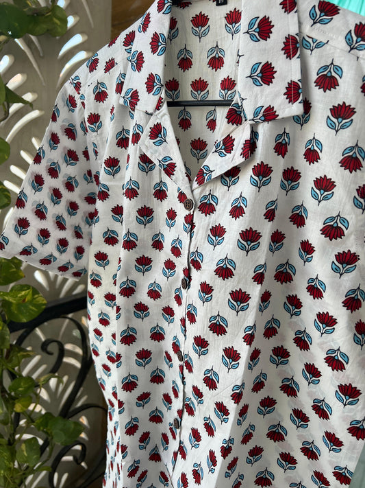 Veronica | Mandrian Collar | Handblock Cotton Printed Shirts