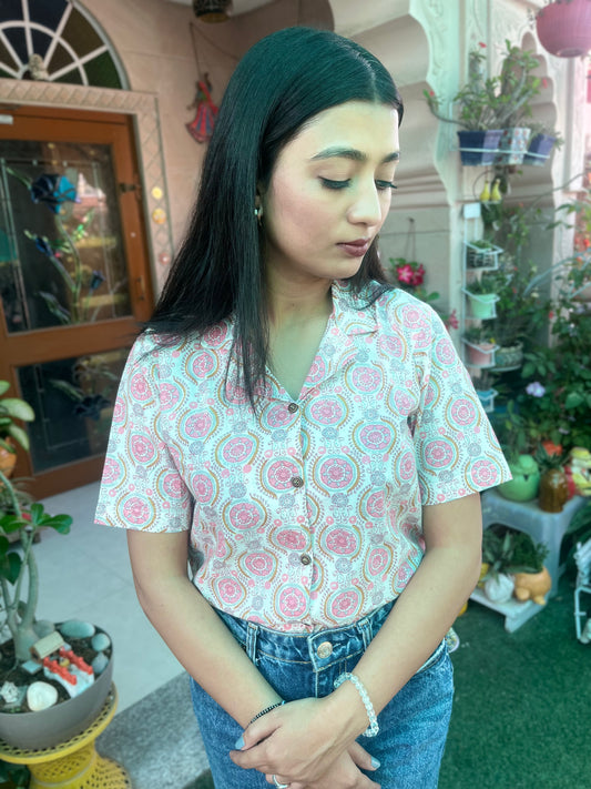 Light Pink Paisly Cotton Peplum Top