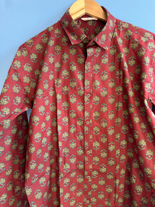 Rust Deep Coral | Men's Cotton Printed Shirt