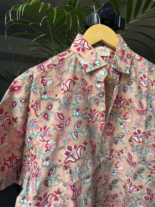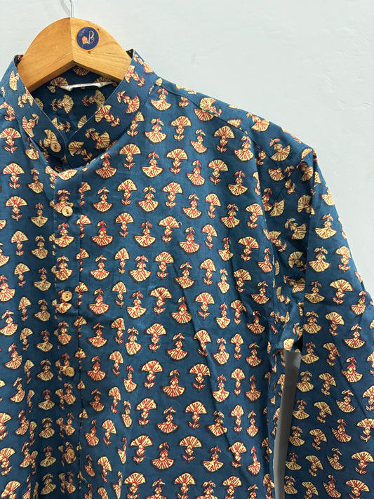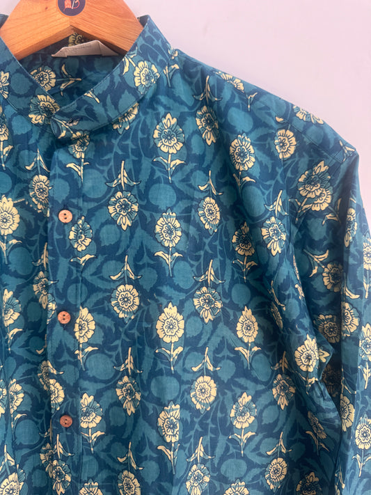 Sedum | Mandarin Collar| Handblock Cotton Printed Shirts