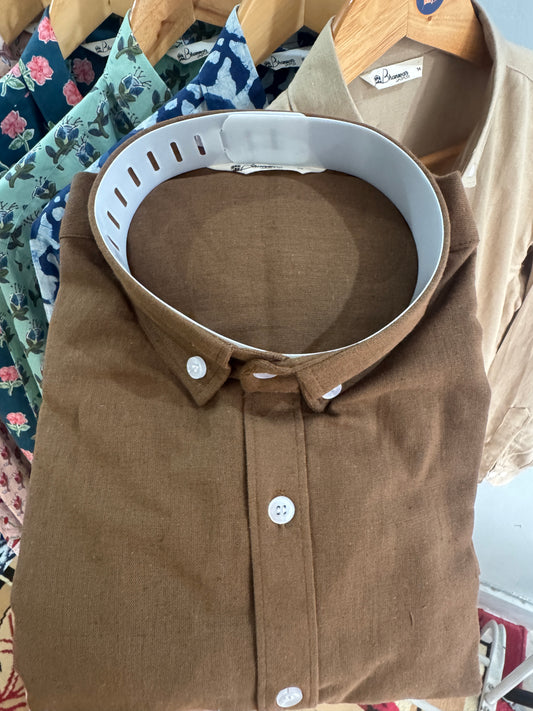 Walnut Brown | Oxford Collar | Linen Blend Shirts