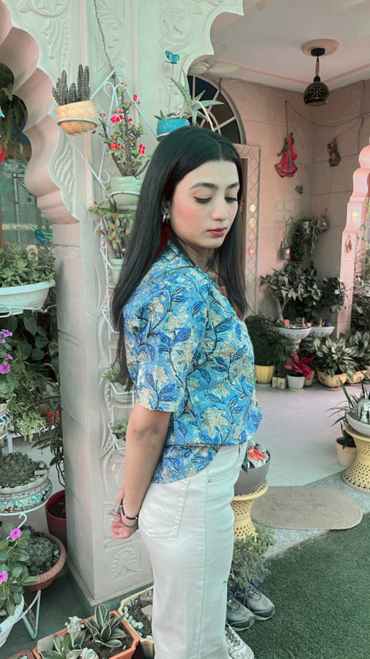 Blue Abstract Print Womens Cotton Shirts