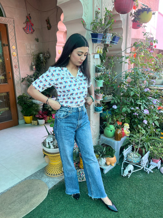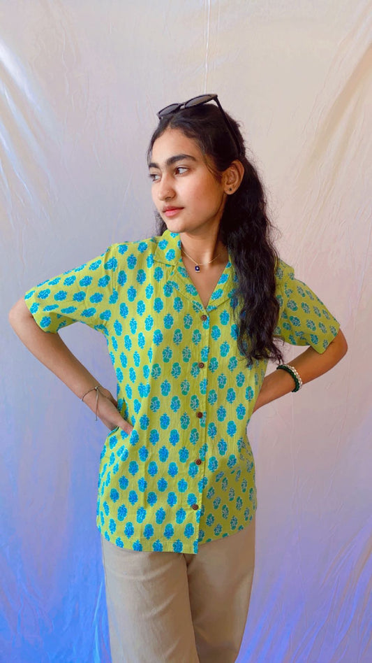 Neon Buta Cotton Womens Printed Shirt
