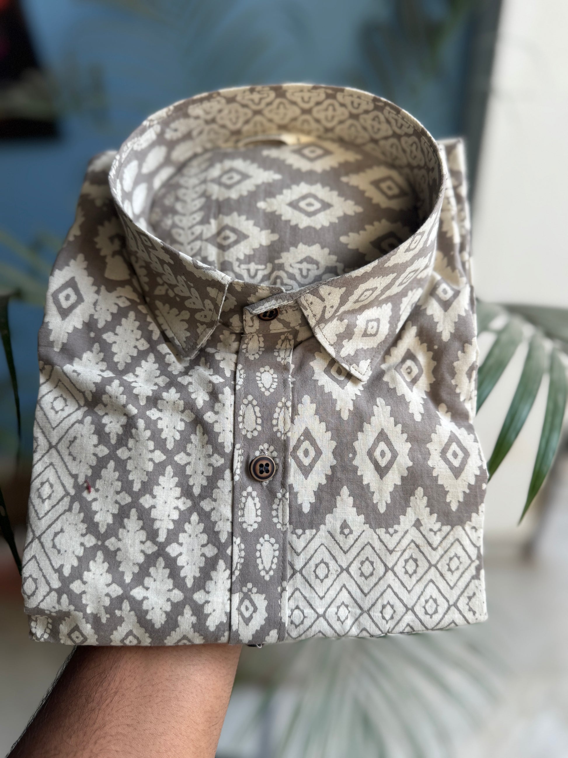 Handmade Sustainable style with our hand block printed shirt, where heritage art meets everyday ease. Crafted with care by Taj bhai and his Team, each piece tells a story—printed by hand, never rushed, and always unique.