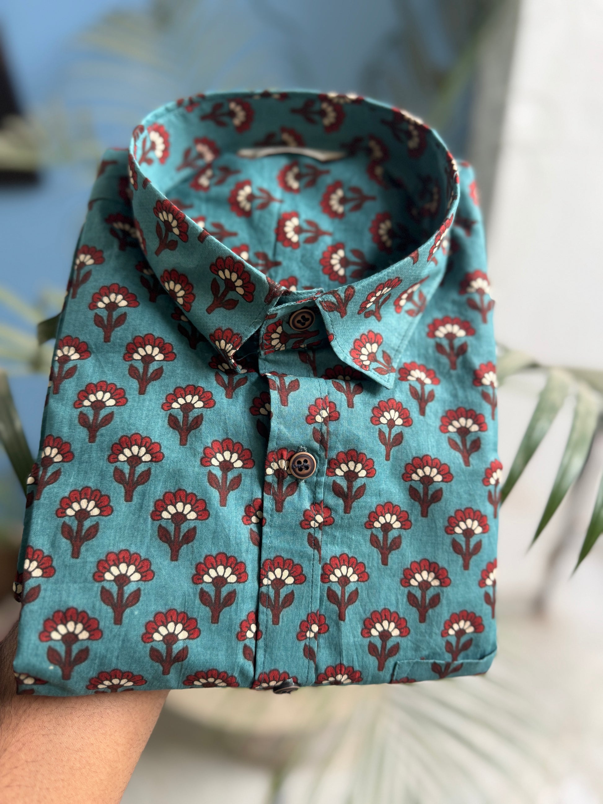 Handmade Sustainable style with our hand block printed shirt, where heritage art meets everyday ease. Crafted with care by Taj bhai and his Team, each piece tells a story—printed by hand, never rushed, and always unique.
